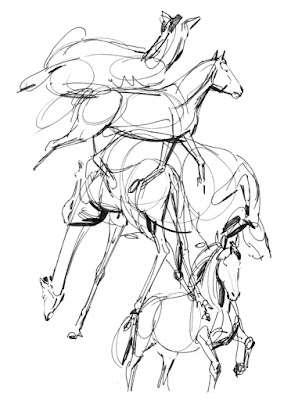 Here's a few more quick pen sketches. Various, mainly horses;
